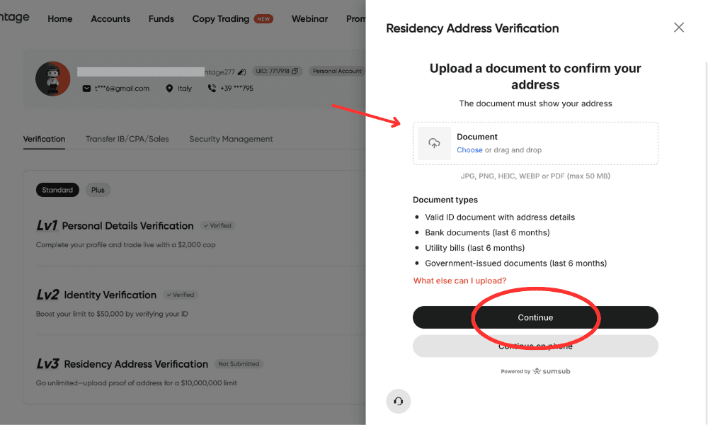 A questo punto la tua identità sarà verificata con successo e dovremo procedere con la verifica della residenza