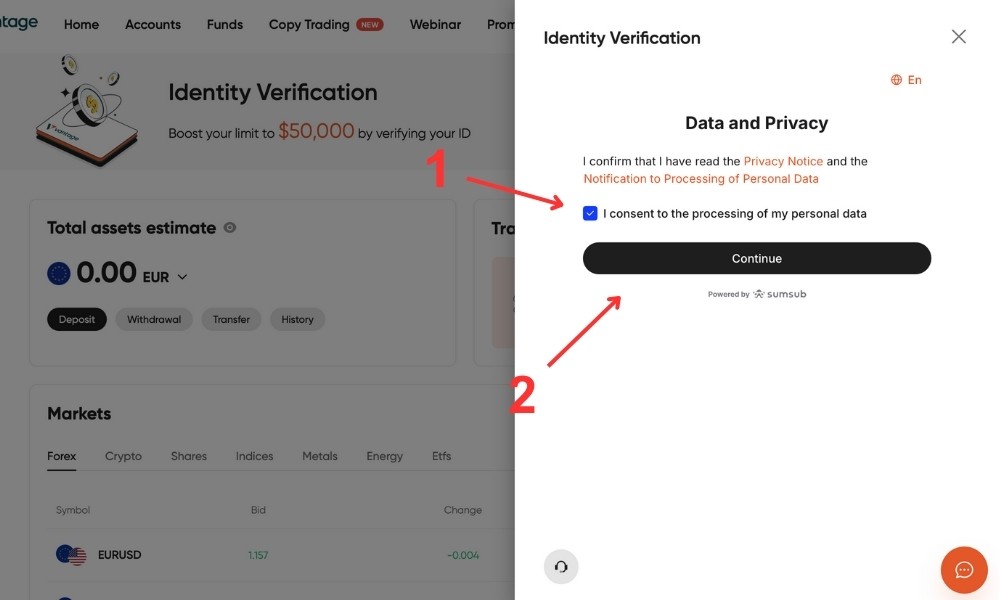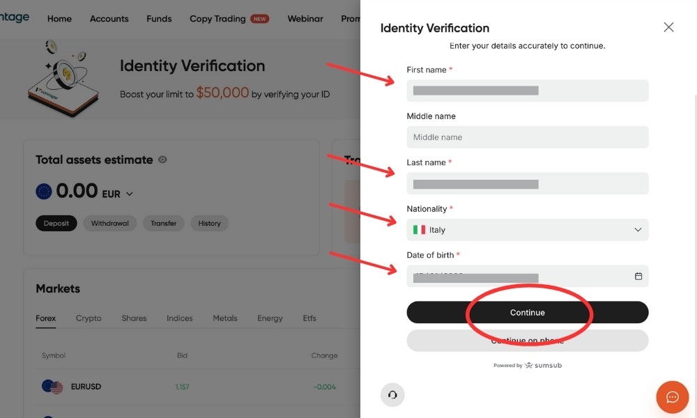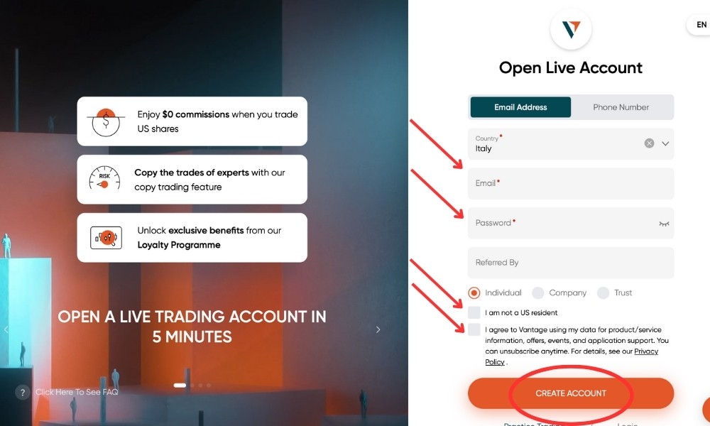 Vantage. clicca sul link del broker.
