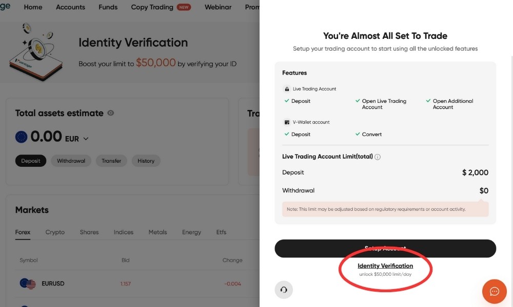 Premi il tasto "Identity Verification"