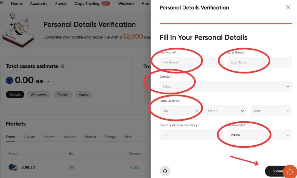 Ora procedi con la compilazione dei tuoi dati personali