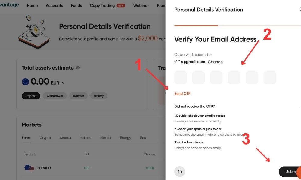 Premi il tasto "Send OTP" che farà arrivare alla tua mail un codice di 6 numeri